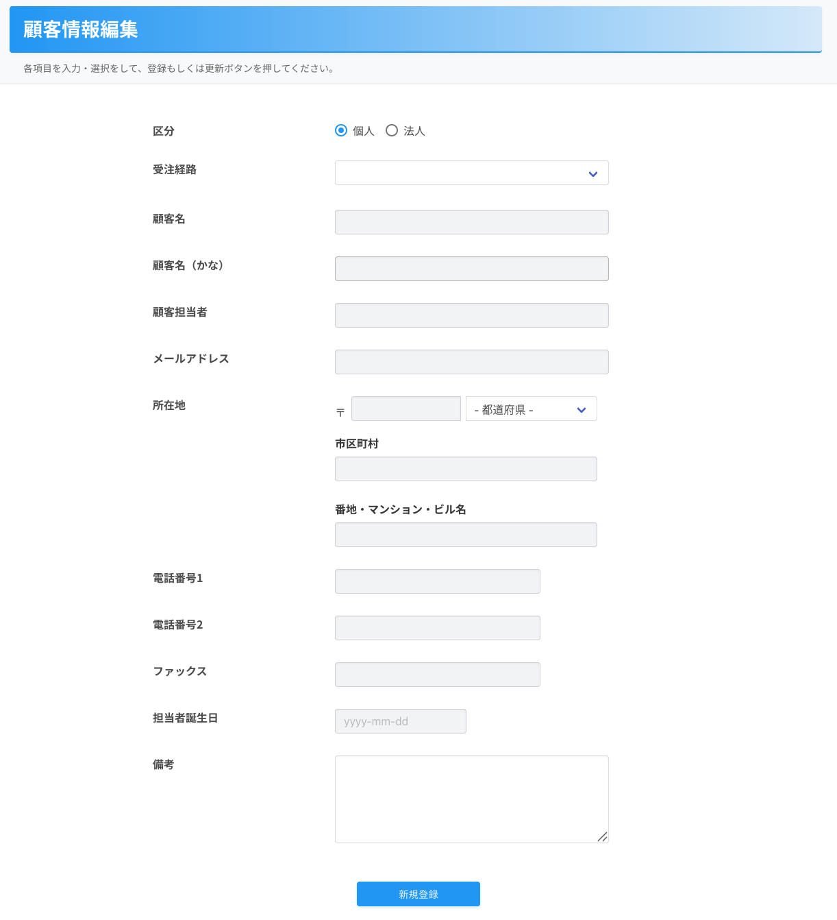 必要項目に入力し、【新規登録】(編集時は【編集内容を更新する】)をクリックして保存します。