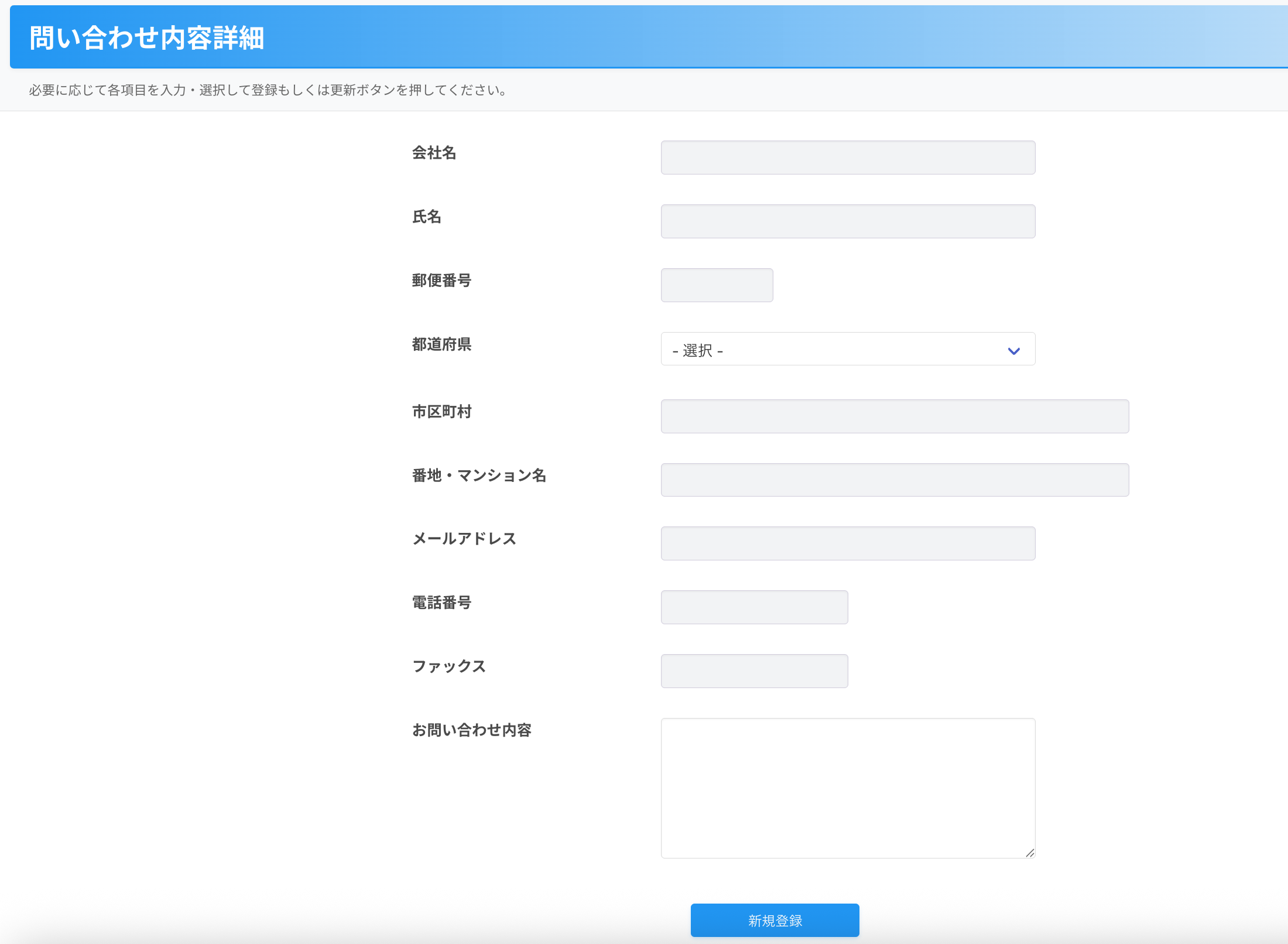 ※お問い合わせ管理は、お問い合わせに関する履歴を記録するための機能であり、ECサイトでのお問い合わせ情報を取り込んだり、本システムからお問い合わせの返信を行ったりするものではありません